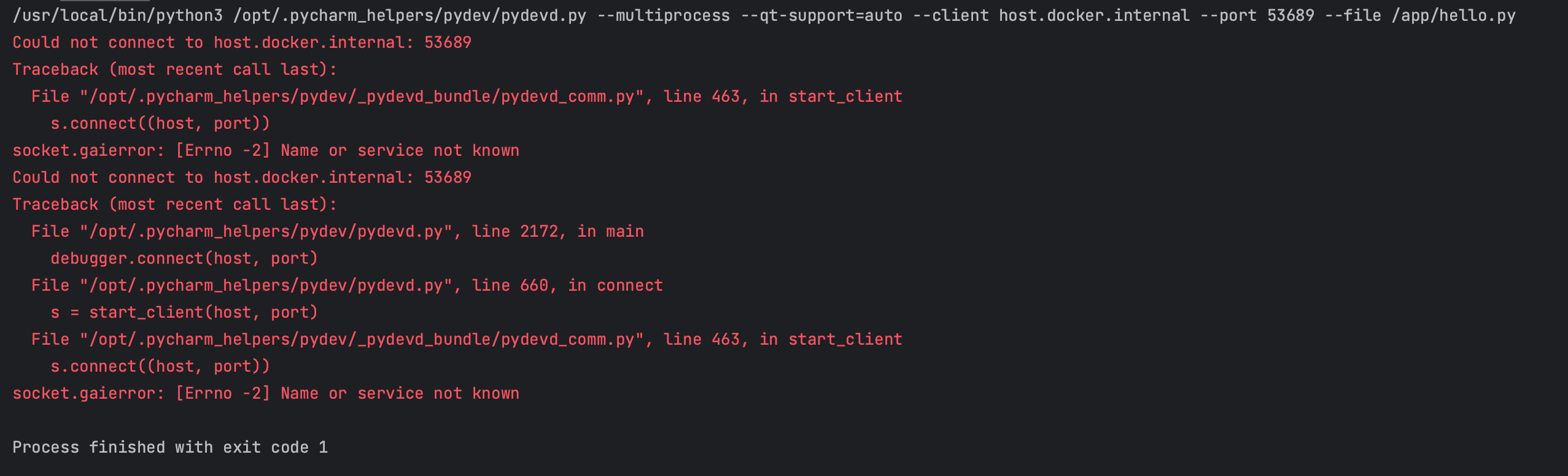 目前使用這個方式沒辦法使用 debugger,初步推測為 container 沒有辦法連接 port 出來,有可能未來 PyCharm 更新會解決這個問題