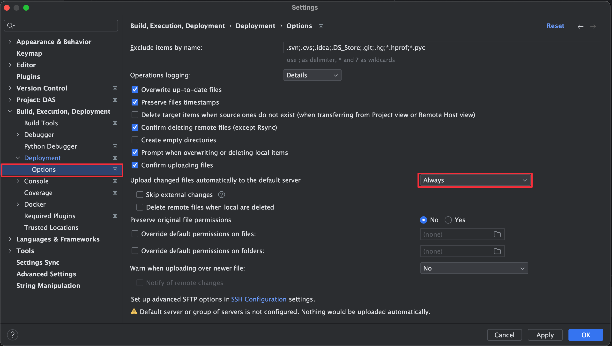 到 Options 內設定自動上傳,這樣每次執行前就會自動上傳目前的 code 到主機上