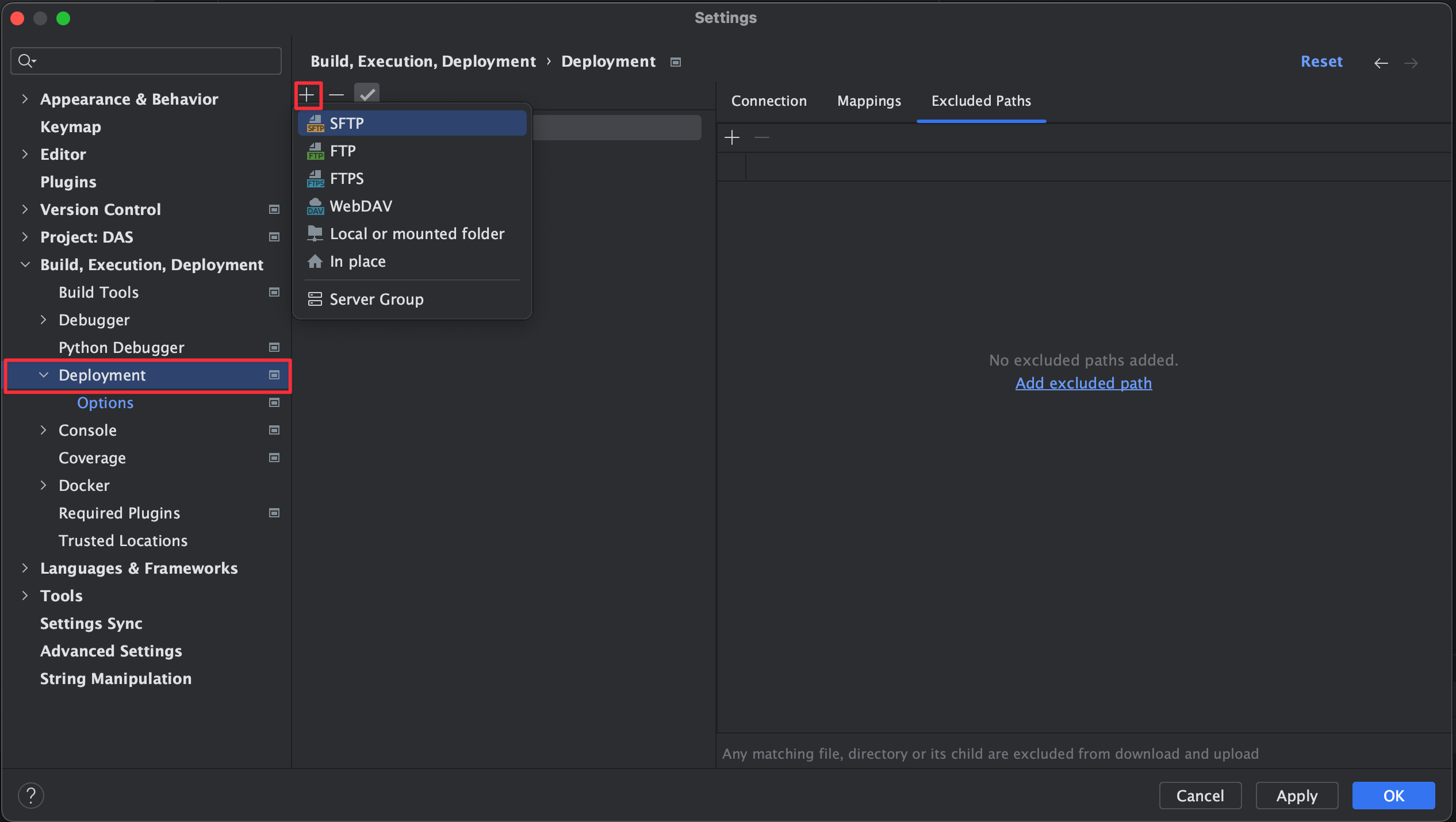 Settings > Deployment > SFTP 建立檔案上傳