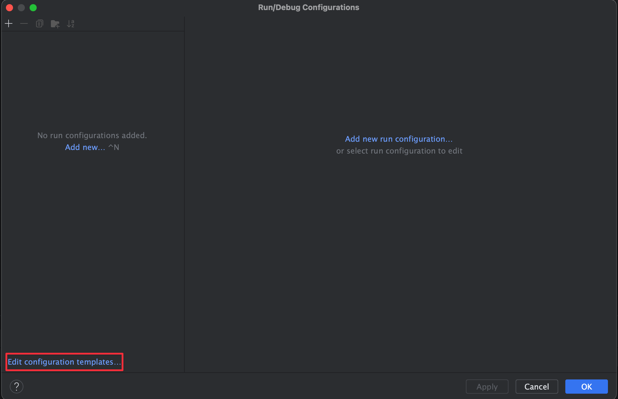 到 Run > Edit Configurations 裡面選 Edit configuration templates… 建立模板,這樣就不用每個程式都要單獨設定。