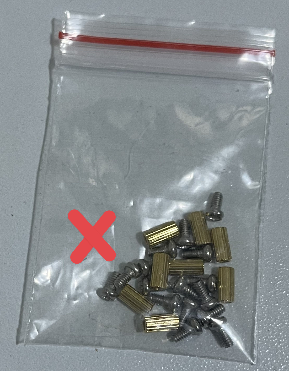 因為那包螺絲是給電路板底座的,數量是剛好的。而且那個螺絲鎖進去之後拿不出來,連磁鐵都不太吸得起來,還好我有額外的 M2 螺絲可以鎖。