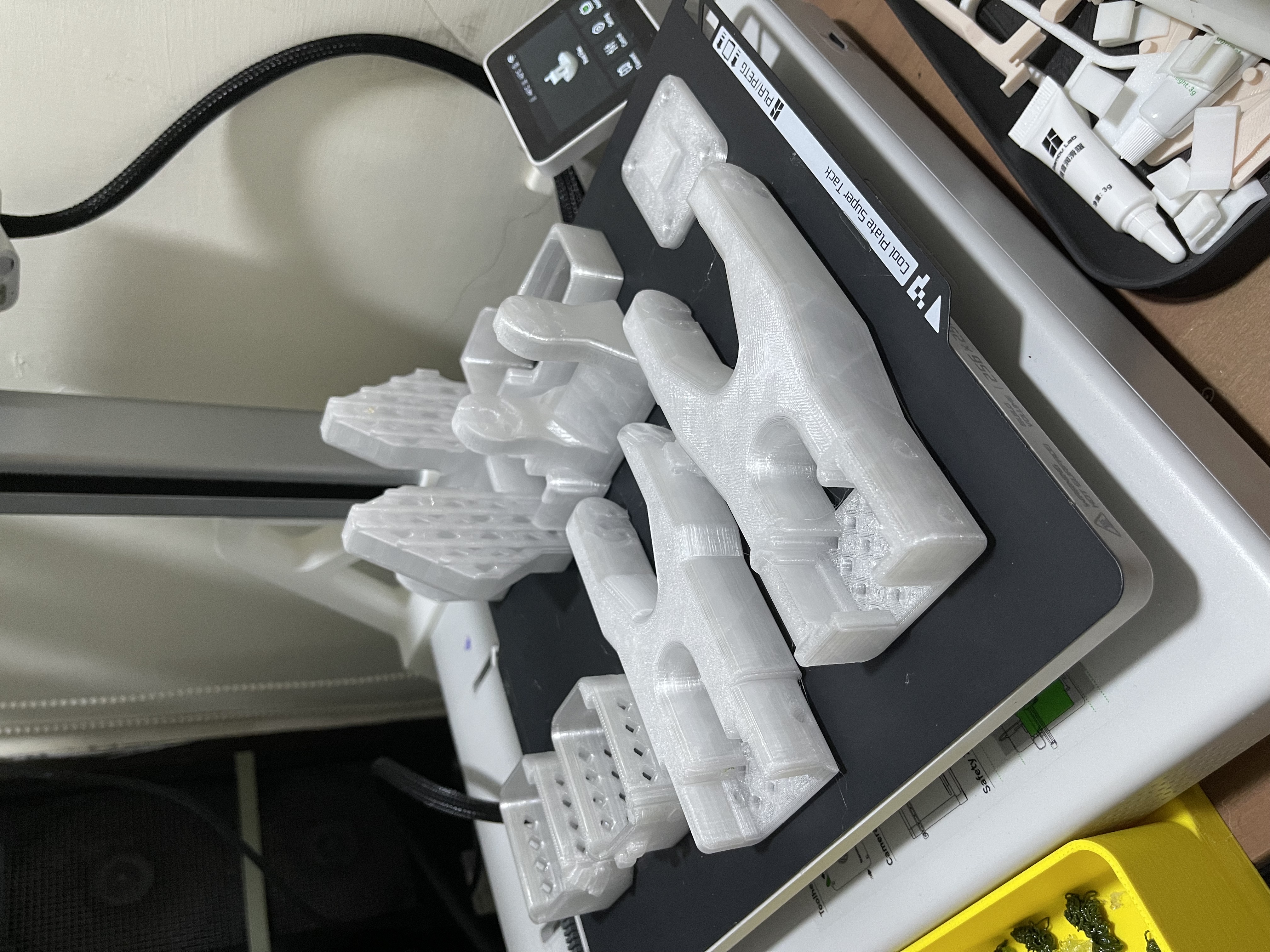 我用的是 PETG translucent 跟 PETG HF,不是 PLA Basic。可能稍微有點熱蠕變,有些地方很緊、要很大力塞進去。也是真的有折斷一兩個零件。