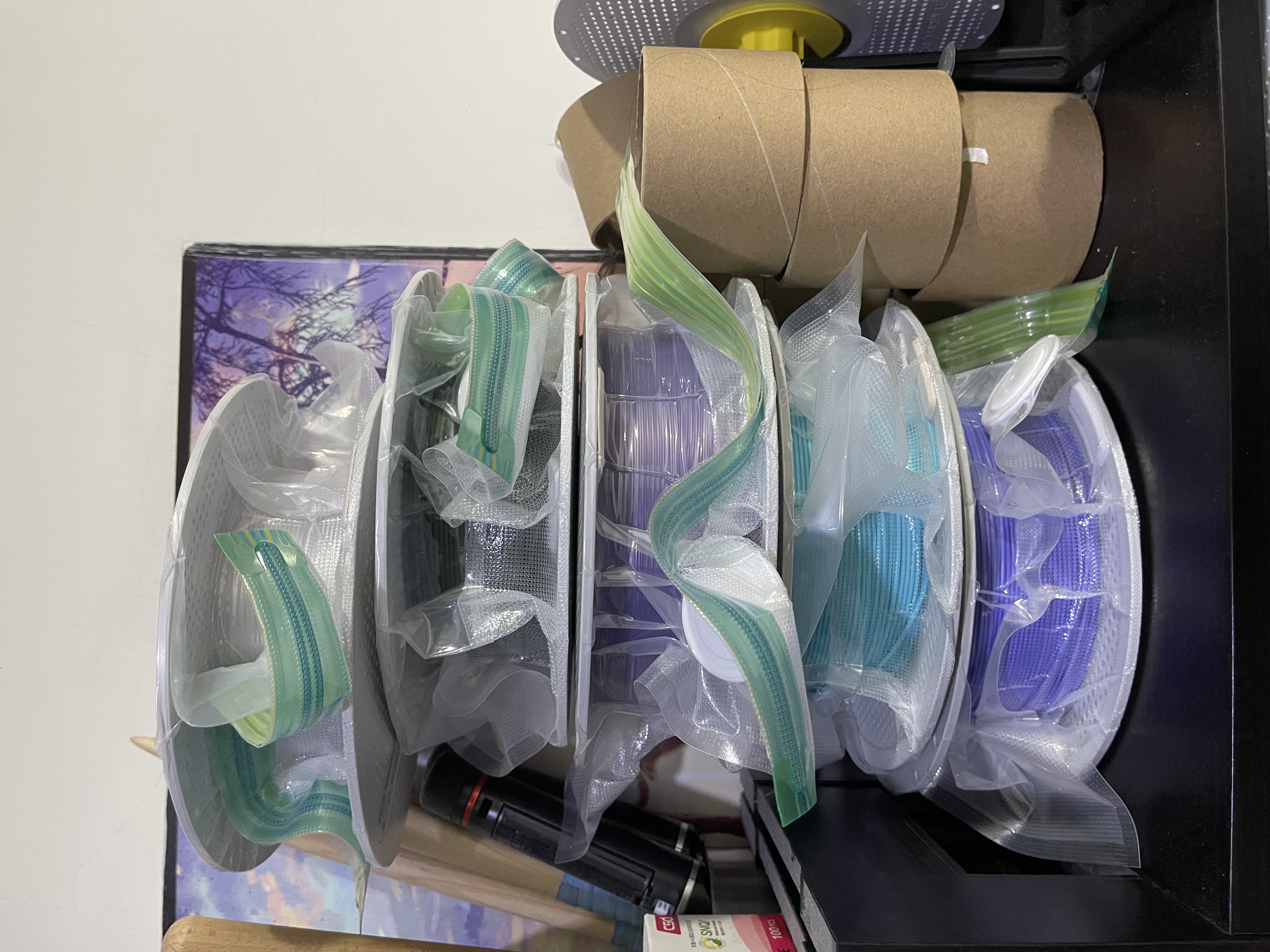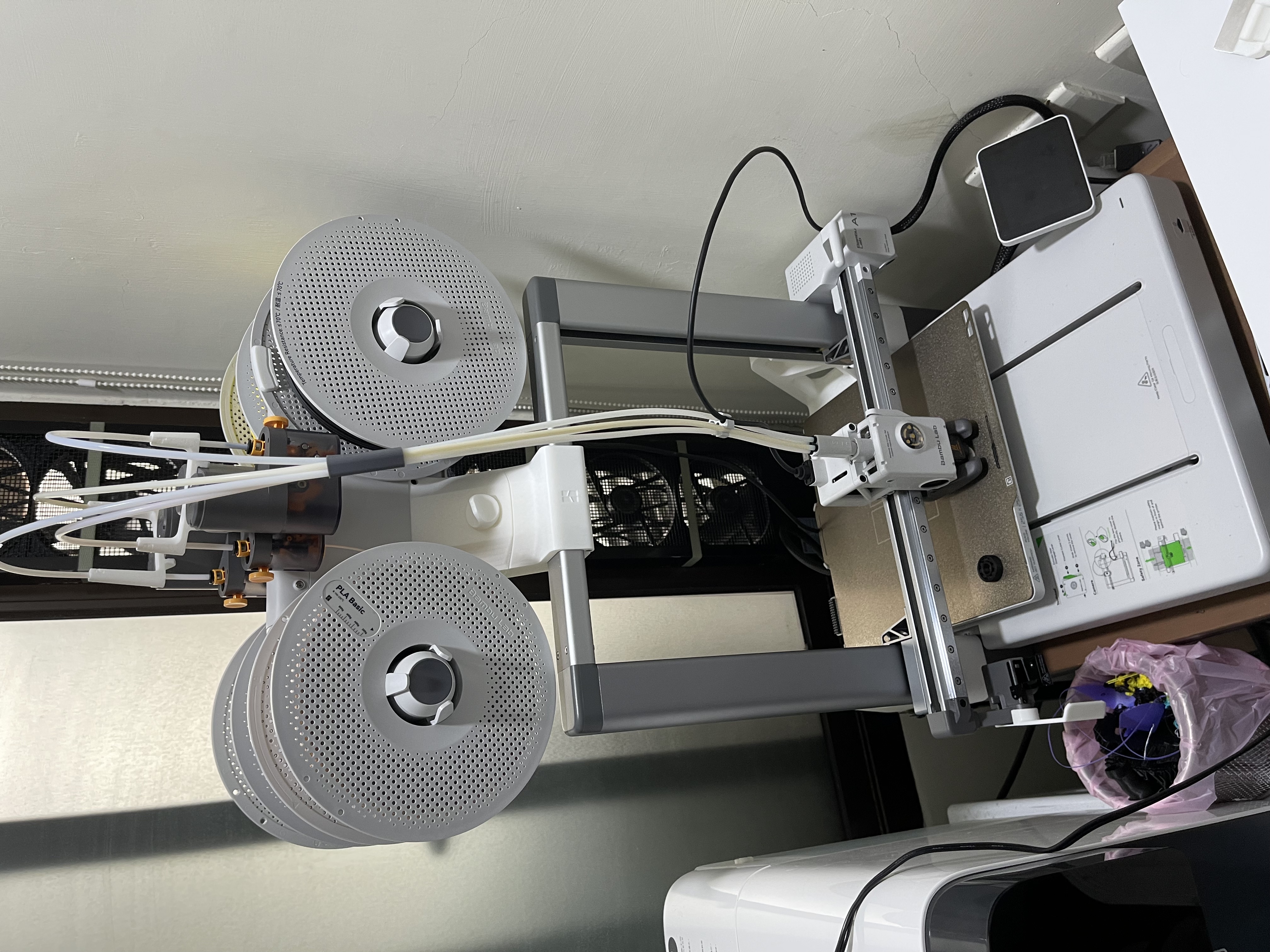 另外一開始還在研究到底要不要買 combo,就是多一個 AMS Lite 可以多色列印,後來發現重點其實不是多色列印,而是可以把四個顏色放上去自動切換,也有一捲線用完自動換下一捲的功能,這個方便性提升非常多。